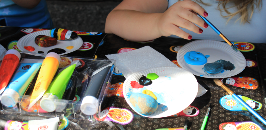 Lasten ja isovanhempien leiripäivältä vuonna 2018, kivien maalausta